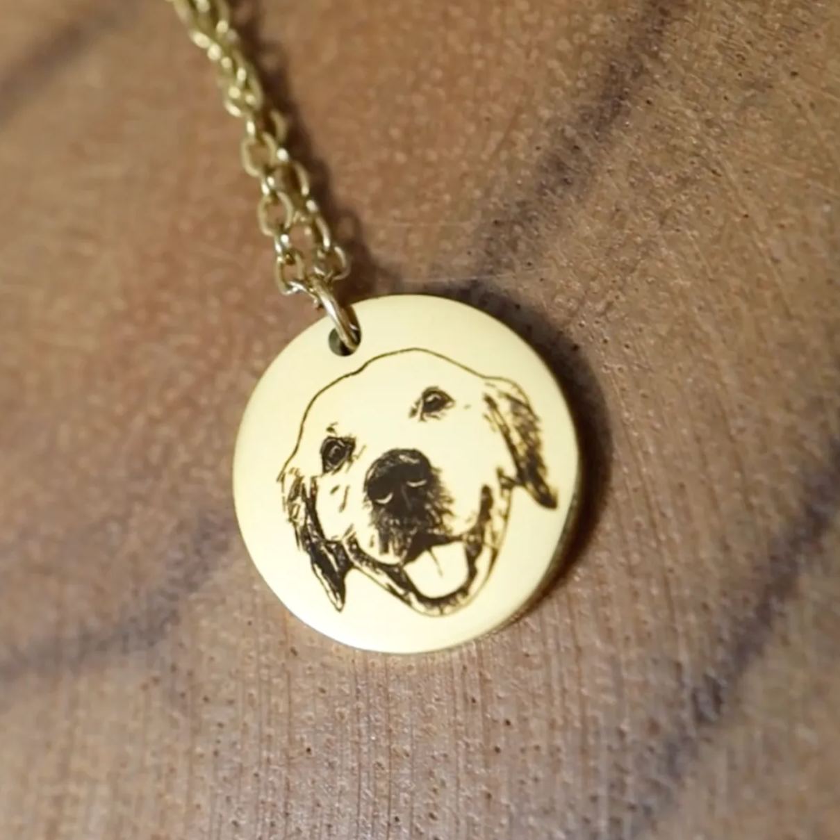 Your piece is created by our in-house artists - we take a picture of your pet and create a piece of B&W line art, from there it is engraved onto your pendant and turned into a necklace. Refer to our product images to get a feel for how the image will look once transformed and engraved.