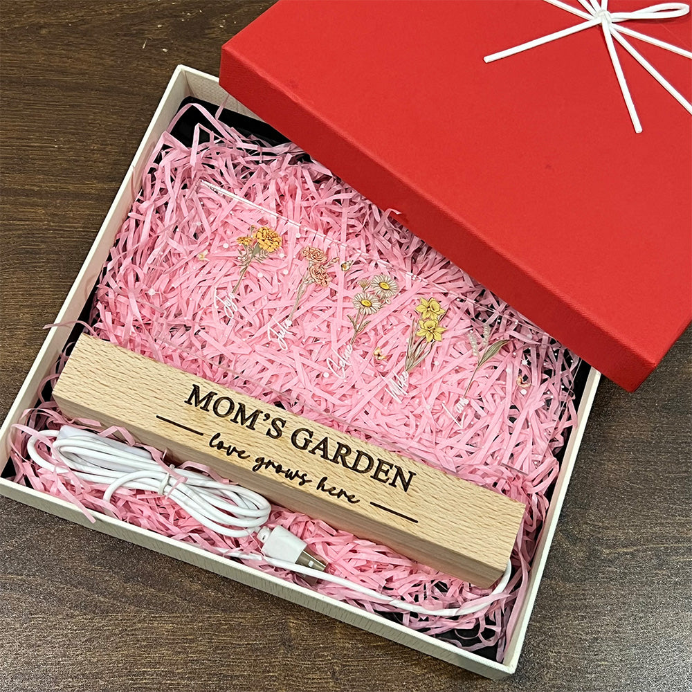 Struggling to find something unique? This night light is the epitome of originality. It's so special, you won't find anything like it anywhere else. Crafted with heartfelt personalization in mind, our acrylic LED night light allows you to create a truly unique and cherished gift. Customize the number of kids, their names, and even the birth flower of each, alongside mom's special nickname, making every glance a tender reminder of family love.