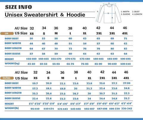 Sweatshirt & Hoodie Size Chart: