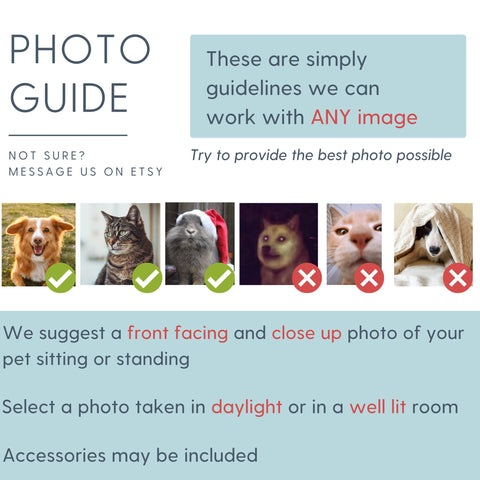 4. We suggest no accessories on the pet(s) to better capture all their unique features.